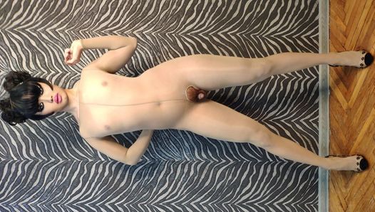 Фембой танцює в стрінгах + клізма її великої транссексуальної дупи (частина 1)
